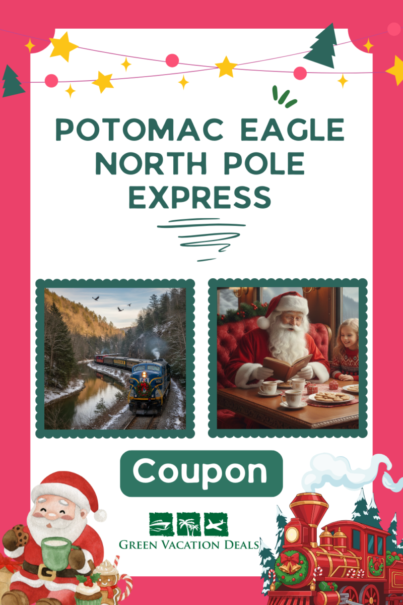 You’ll enjoy a ride on the Potomac Eagle Scenic Railroad. This train ride starts at Wappocomo Station in Romney, West Virginia. And from there, it’s a 75-minute interactive train ride. You’ll be entertained by great storytelling and Christmas carols. And at the North Pole, Santa will board the train! Every kid on board will get a gift from Santa, too! And you can enjoy Mrs. Claus’ famous cookies and milk!