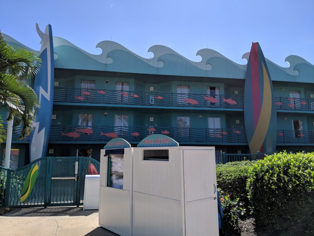 Center Court doesn’t get any higher on my list because you’re not that close to the food court, arcade, busses or pools. But Center Court does have not only a tennis theme but great Disney theming with Donald Duck and a tennis racket and Huey, Dewey and Louie playing…baseball (which actually doesn’t fit the theming and really made no sense to me…but they’re so cute that helps make up for it!). Another great thing about Center Court is that if you drive to Disney World, it is extremely close to the parking lot.
