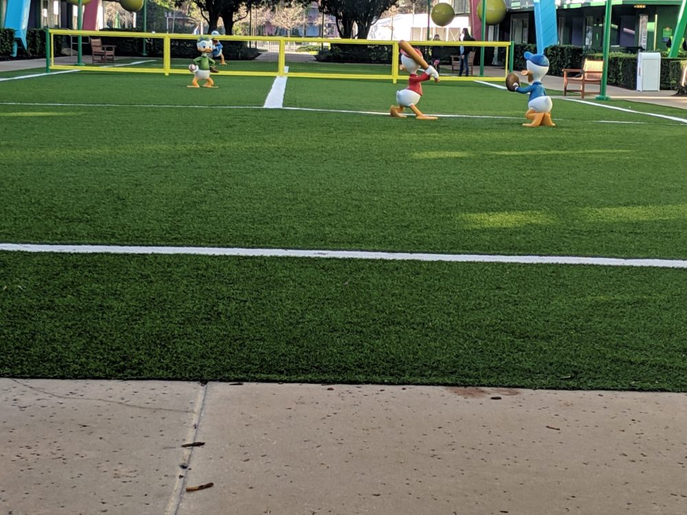The colors in the Touchdown! Section are very colorful and bright. It has great theming with the football field and the pennants of college teams (and I love the Mickey on the football field!).
