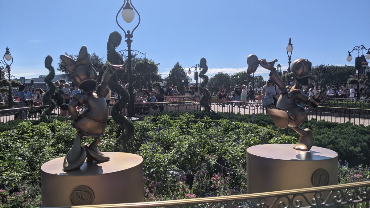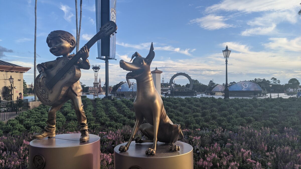So that is why I am excited by their new gold statue decorations. Throughout the parks, you can see some of your favorite Disney characters displayed in these gold statues. For example, you can see Simba & Timon from The Lion King in Animal Kingdom. You can see Coco & Dante from Coco in Epcot (fittingly, near Mexico). Epcot also has Figment, Rocket from Guardians of the Galaxy, and Olaf from Frozen. You can see characters like Goofy, Pluto, Donald Duck, and Daisy Duck in Magic Kingdom. And so on.