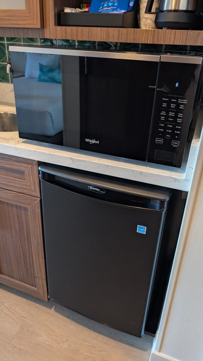 Since Bay Lake Tower is a Disney Vacation Club building, each room has a full-size kitchen with everything you’d need to have a meal in your room – refrigerator, microwave, plates, silverware, etc. If you’re driving, you can save money on your stay by bringing food and having a few meals at your room. Even if you fly, you could consider having food delivered to your room through Amazon.